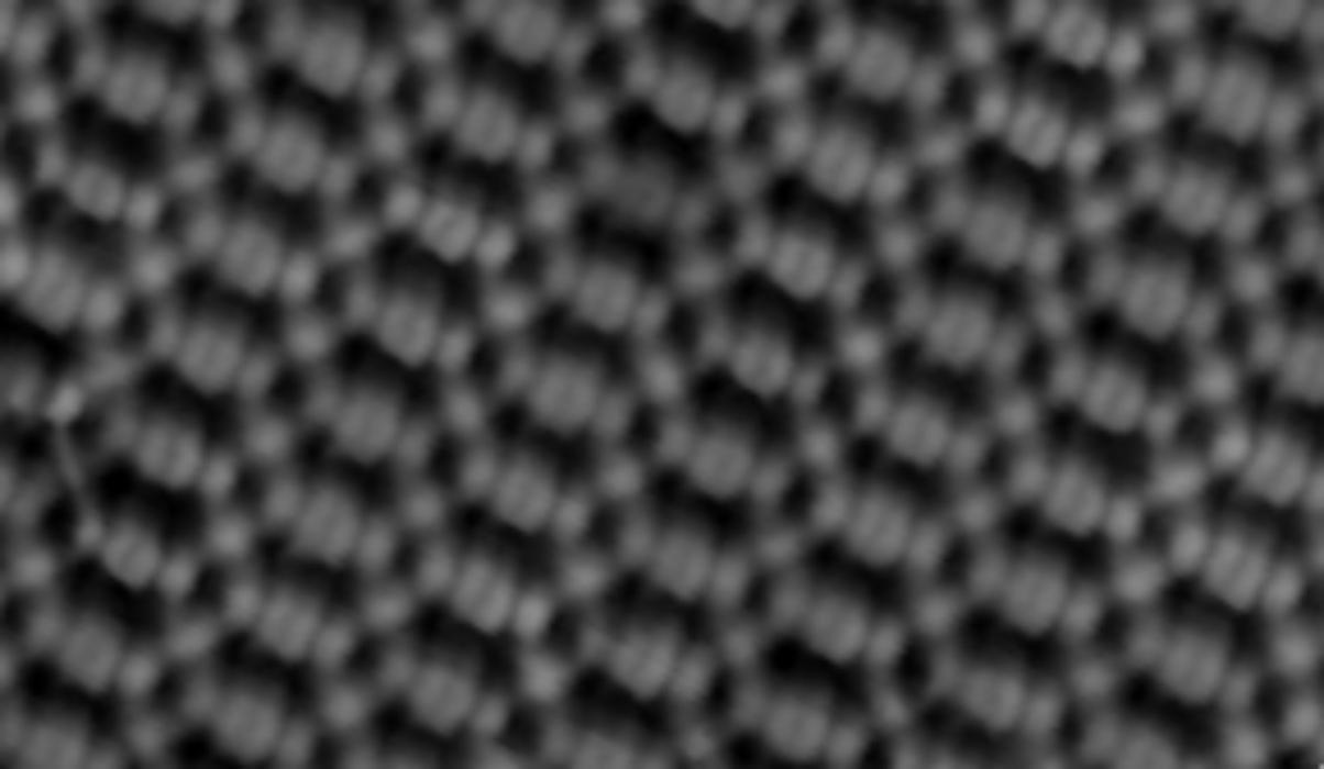 Fe-TCNQ network on graphene. Fe atoms are shown as circular features that are regularly spaced by TCNQ molecules.